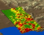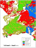 Distribution of species richness predicted from the models. This is based on 23 species (out of 160 - chosen non-randomly for different life history characteristics) of Proteaceae. The highest richness predicted was 9 species per minute by minute cell (the highest known richness is 23). Despite being biased and undersampled, the pattern is remarkably close to that expected. These are preliminary data - geology and ruggedness have not yet been incorporated into the model: We assume that including these variables will refine model even more.