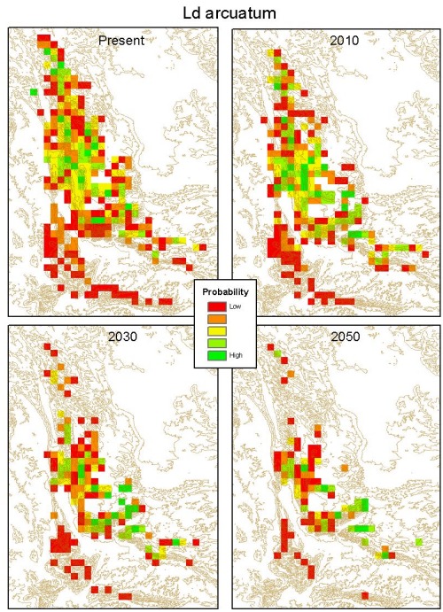 The Climate Modelling Team at NBI are using Protea Atlas data to model the distribution of proteas using General Additive Models. This allows a prediction of the future distributions of proteas based on the predicted changes in climate over the next 50 years. Most species have already been modelled. When completed we will be able to determine what proportion of species will be strongly or weakly affected or unaffected by predicted climatic change, and the ecological traits of species in these groups.