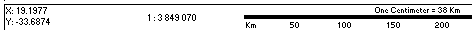 1:250 000. Look at the scale bar and map scale on the screen just below your map.