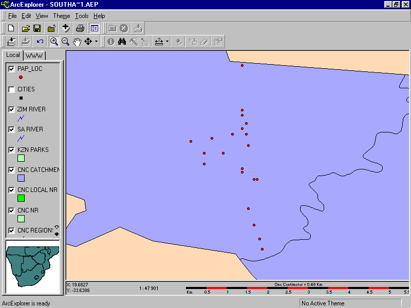 of proteas from the PAPSRSDB to view on ArcExplorer.